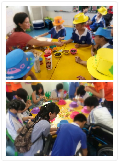 ↑志愿者們帶領(lǐng)小朋友們做手工