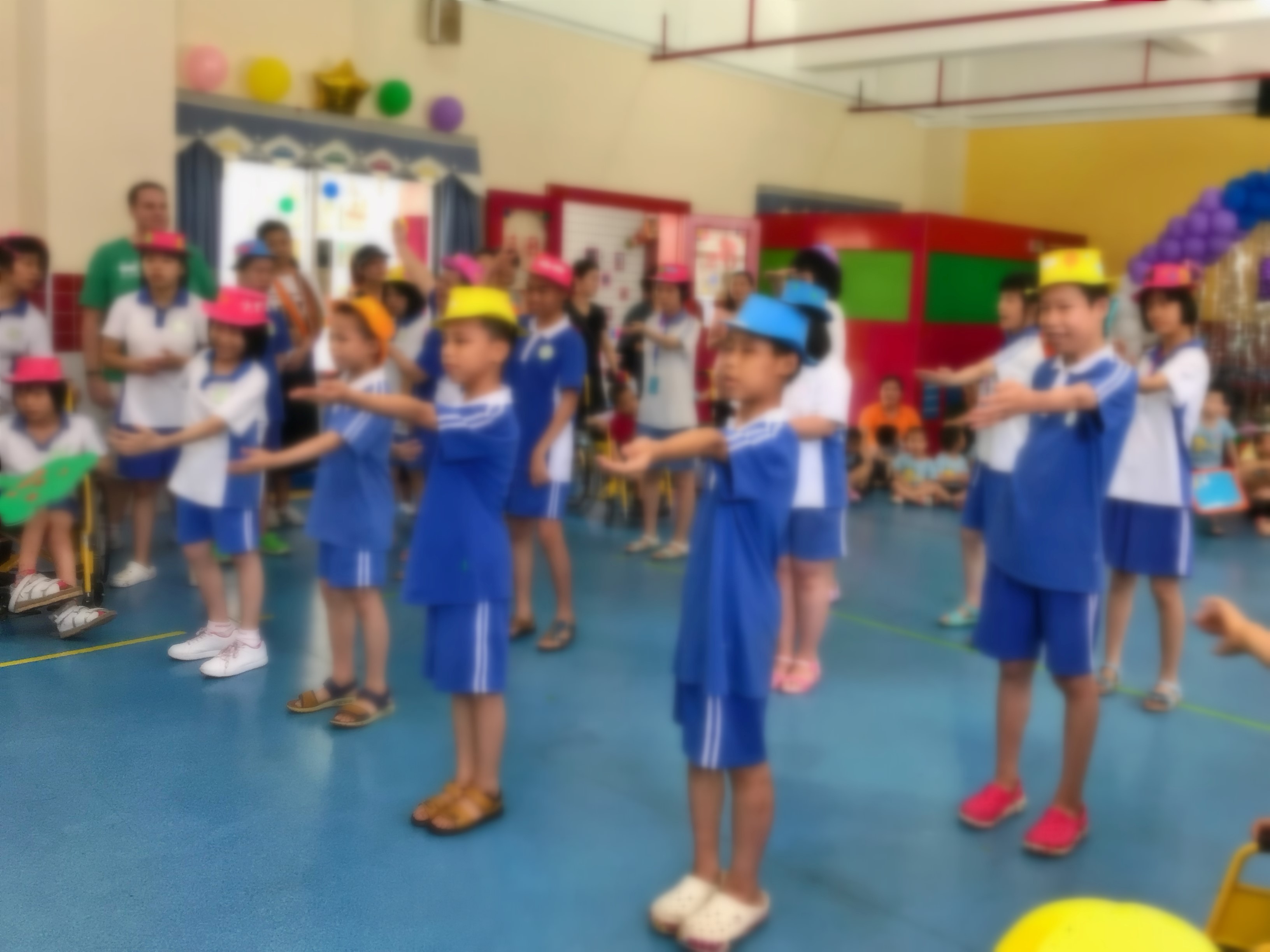 活動(dòng)結(jié)束時(shí),這群可愛(ài)的小朋友們?yōu)榇蠹冶硌萘耸终Z(yǔ)操。他們掛在臉上的笑容和那份陽(yáng)光活潑不禁讓現(xiàn)場(chǎng)的每一位志愿者為之動(dòng)容。